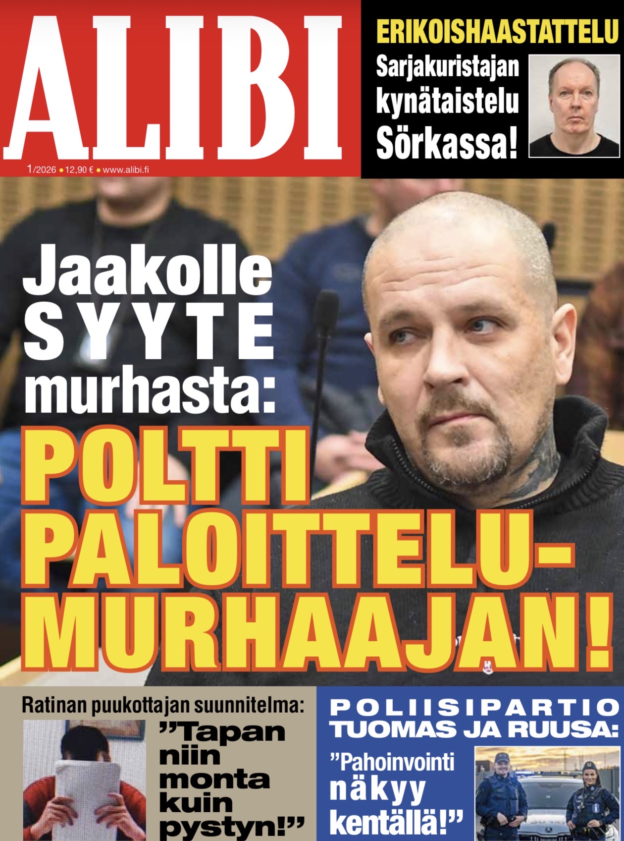 Tilaa Alibi – rikosjournalismin erikoislehti Suomessa. Alibi on muhkea lukupaketti kaikille, joita kiinnostavat ajankohtaiset rikokset, oikeudenkäynnit ja poliisityön arki. Lehti tarjoaa syväluotaavaa rikosjournalismia, joka vie lukijan tapahtumien kulisseihin, rikospaikoille, vankiloihin ja poliisiautojen takaistuimille. Alibi ei kaihda vaikeita aiheita, vaan tuo esiin rikosten seuraukset ja niiden inhimilliset vaikutukset rehellisesti ja kunnioittavasti.