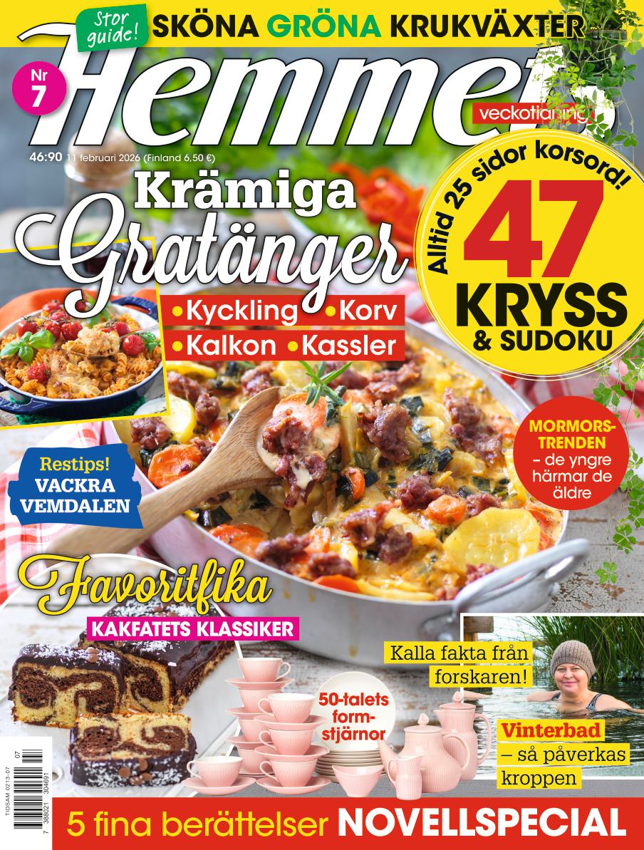 Hemmets Veckotidning on yksi Ruotsin suosituimmista viikkolehdistä, joka tuo iloa, inspiraatiota ja käytännön vinkkejä arkeen joka viikko. Lehti on täydellinen valinta sinulle, joka rakastat ruoanlaittoa, muodikkaita ideoita, ristikoita ja sydäntä lämmittäviä tarinoita. Hemmets Veckotidning on ruotsinkielinen ja ilmestyy kerran viikossa.