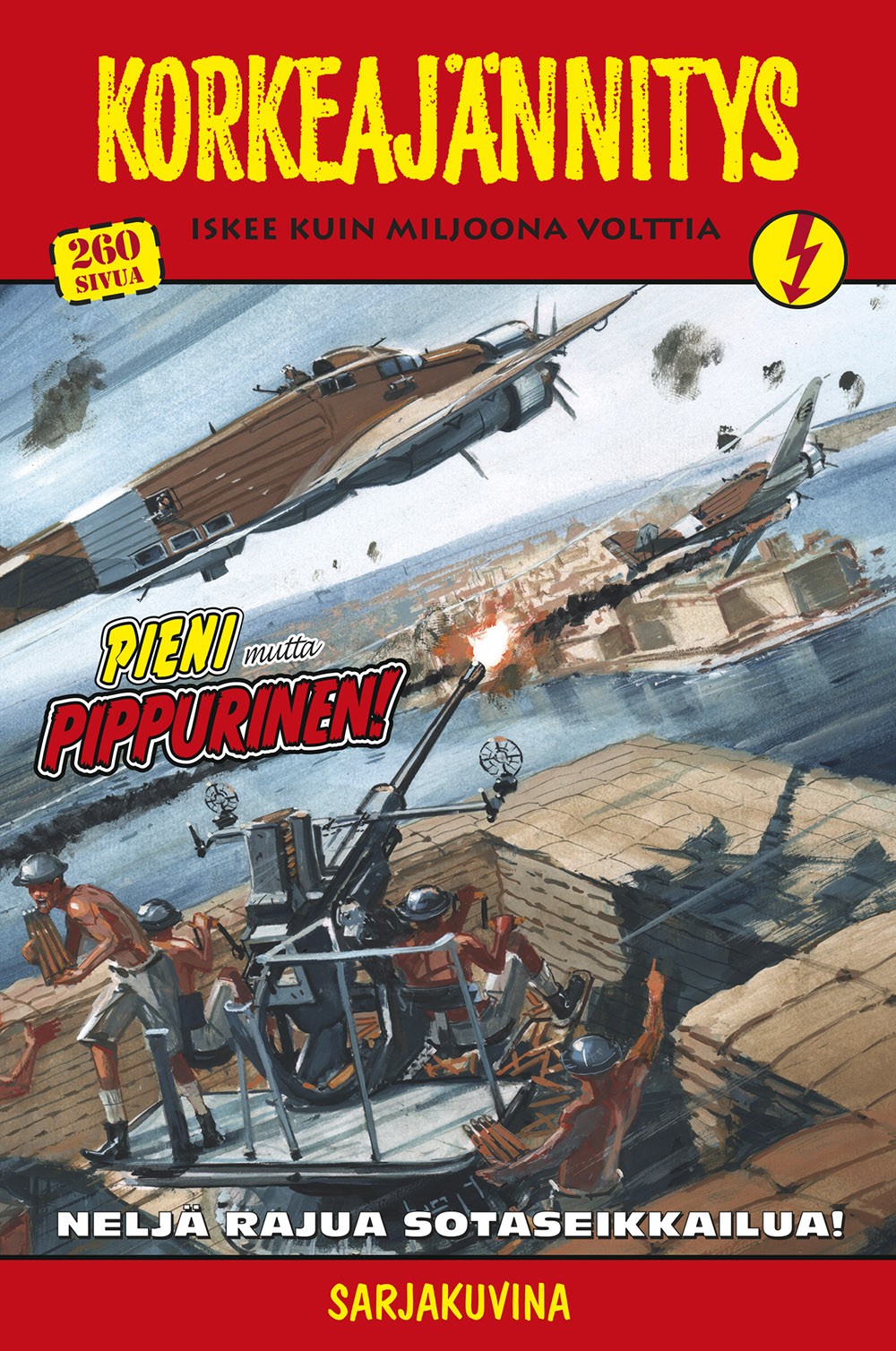 Korkeajännitys on suomalaisen seikkailusarjakuvan klassikko, joka on ilmestynyt yhtäjaksoisesti jo vuodesta 1953. Tämä legendaarinen pokkarisarja tarjoaa 260 sivua rankkoja sotatarinoita, jotka vievät lukijan suoraan etulinjan jännitykseen – olipa kyseessä toisen maailmansodan taistelukentät tai muut historialliset ja fiktiiviset sotanäyttämöt. Jokaisessa julkaisussa on neljä täysimittaista tarinaa, joissa korostuvat rohkeus, selviytyminen, veljeys ja toiminta.