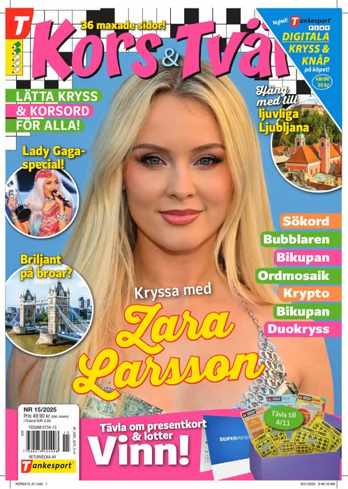 Kors & Tvärs on viihdyttävä ja monipuolinen ruotsinkielinen ristikkolehti, joka tarjoaa älyllisiä haasteita ja mukavaa ajanvietettä ympäri vuoden. Lehti ilmestyy 18 kertaa vuodessa, ja jokainen numero on täynnä vaihtelevia sanatehtäviä, jotka sopivat niin aloittelijoille kuin kokeneillekin sanaristikoiden ystäville. Kors & Tvärs yhdistää perinteiset ristisanatehtävät, kekseliäät sanapelit ja loogiset numeropulmat yhdeksi nautittavaksi lukupaketiksi.