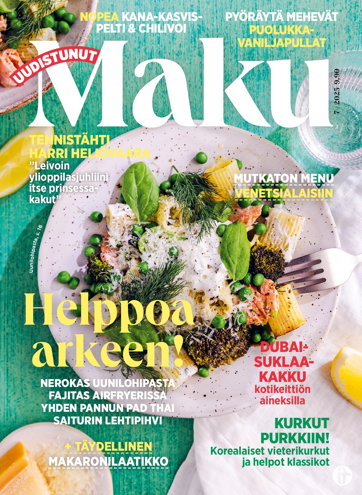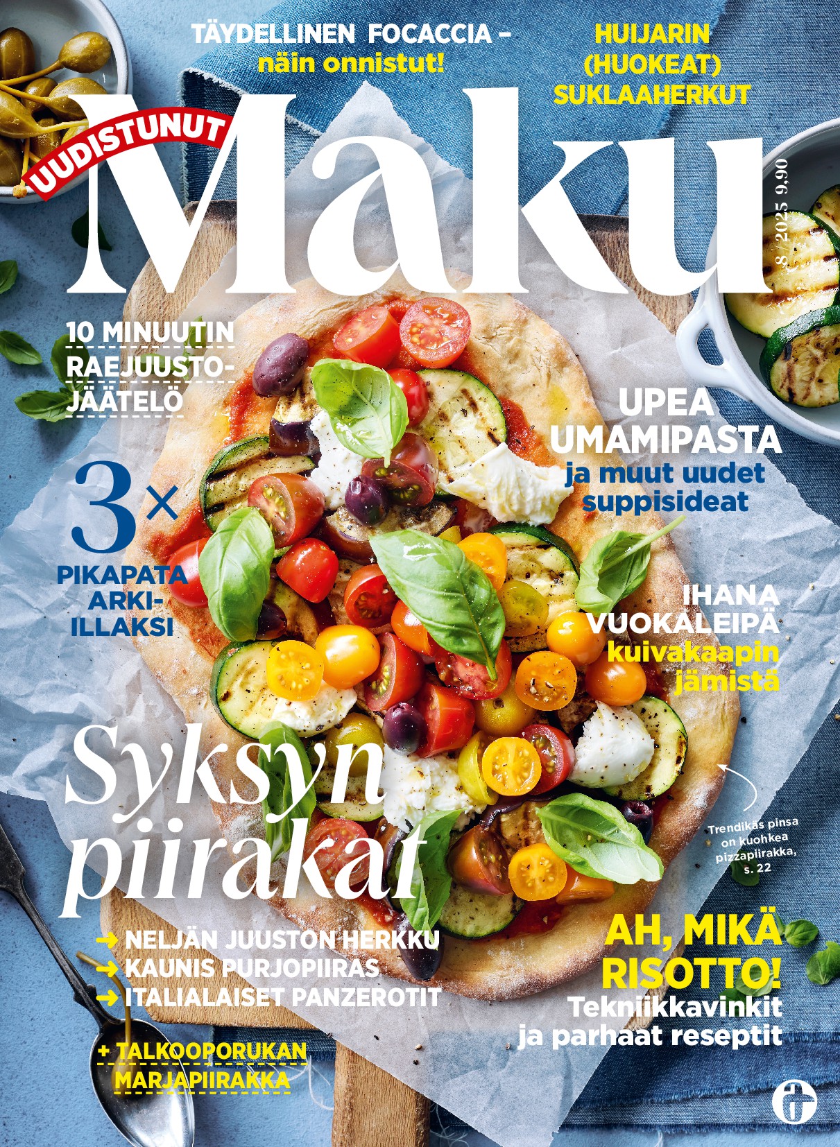 Maku on ruokalehti sinulle, joka rakastat kokata, leipoa ja kokeilla uutta. Se tarjoaa herkullisia ideoita niin arkeen kuin juhlaan, täynnä tuoreita makuja, sesongin parhaita raaka-aineita ja kokkaamisen iloa. Jokainen numero on suunniteltu tekemään ruoanlaitosta vaivatonta ja nautinnollista – keittiöstäsi tulee luovuuden lähde.