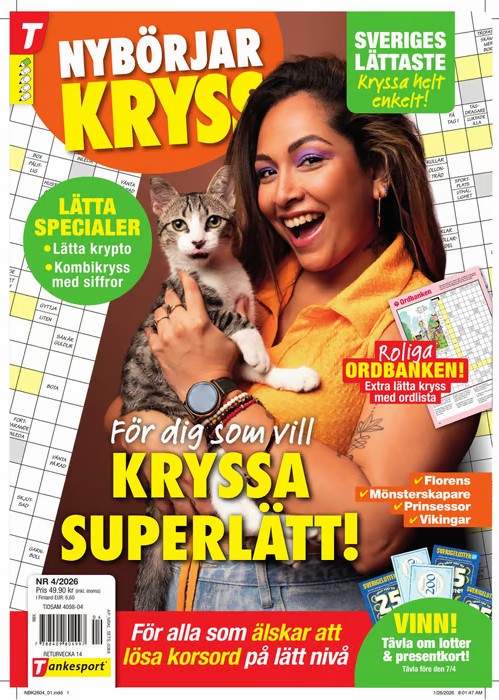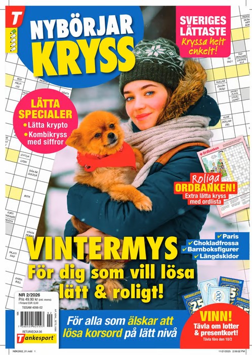 Nybörjarkryss on ruotsinkielinen ristikkolehti, joka on suunniteltu erityisesti aloittelijoille sekä kaikille, jotka haluavat nauttia rennosta, hieman helpommasta sanaristikosta. Lehti tarjoaa hauskaa, kevyttä ja rentouttavaa viihdettä ympäri vuoden – 12 kertaa vuodessa. Suuret ja selkeät ruudut, visuaalisesti houkutteleva taitto ja monipuoliset tehtävätyypit tekevät Nybörjarkryss-lehdestä täydellisen valinnan aivojumppaan, joka virkistää ja ilahduttaa.