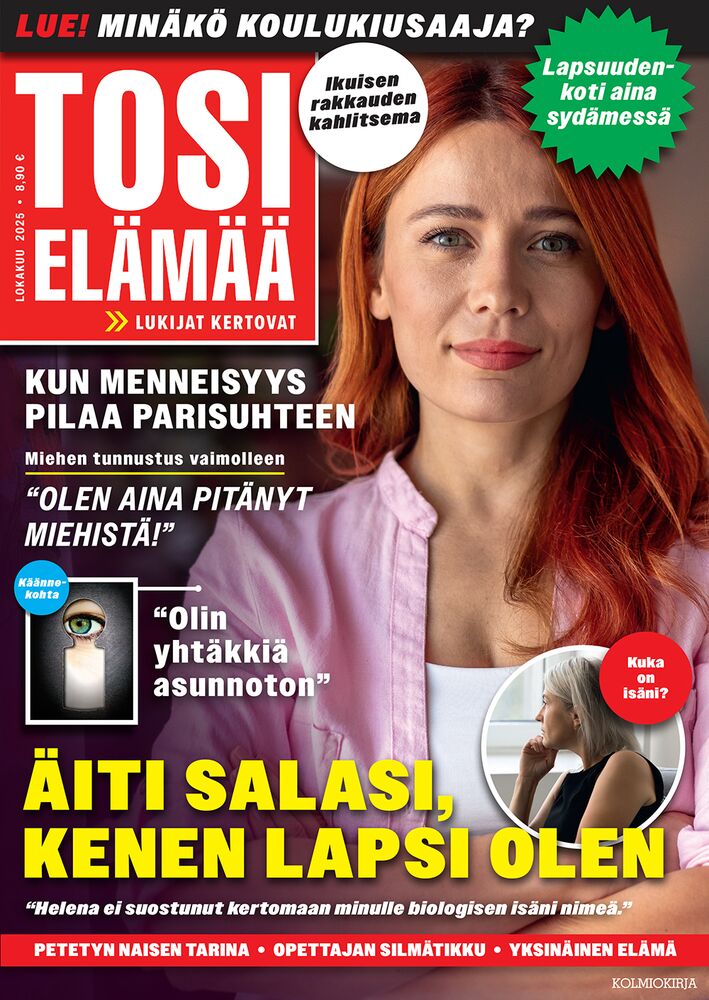 Tosi Elämä on lehti, joka tuo lukijalle aidon elämän äänet – tarinoita, jotka koskettavat, yllättävät ja jäävät mieleen. Lehti keskittyy tavallisten ihmisten epätavallisiin kokemuksiin, ilon ja surun hetkiin, yllättäviin käänteisiin ja elämän suurin tunteisiin. Tosi Elämä -lehtitilaus on täydellinen valinta sinulle tai lahjaksi ihmiselle, joka rakastaa elämänmakuisia ja koskettavia kertomuksia.