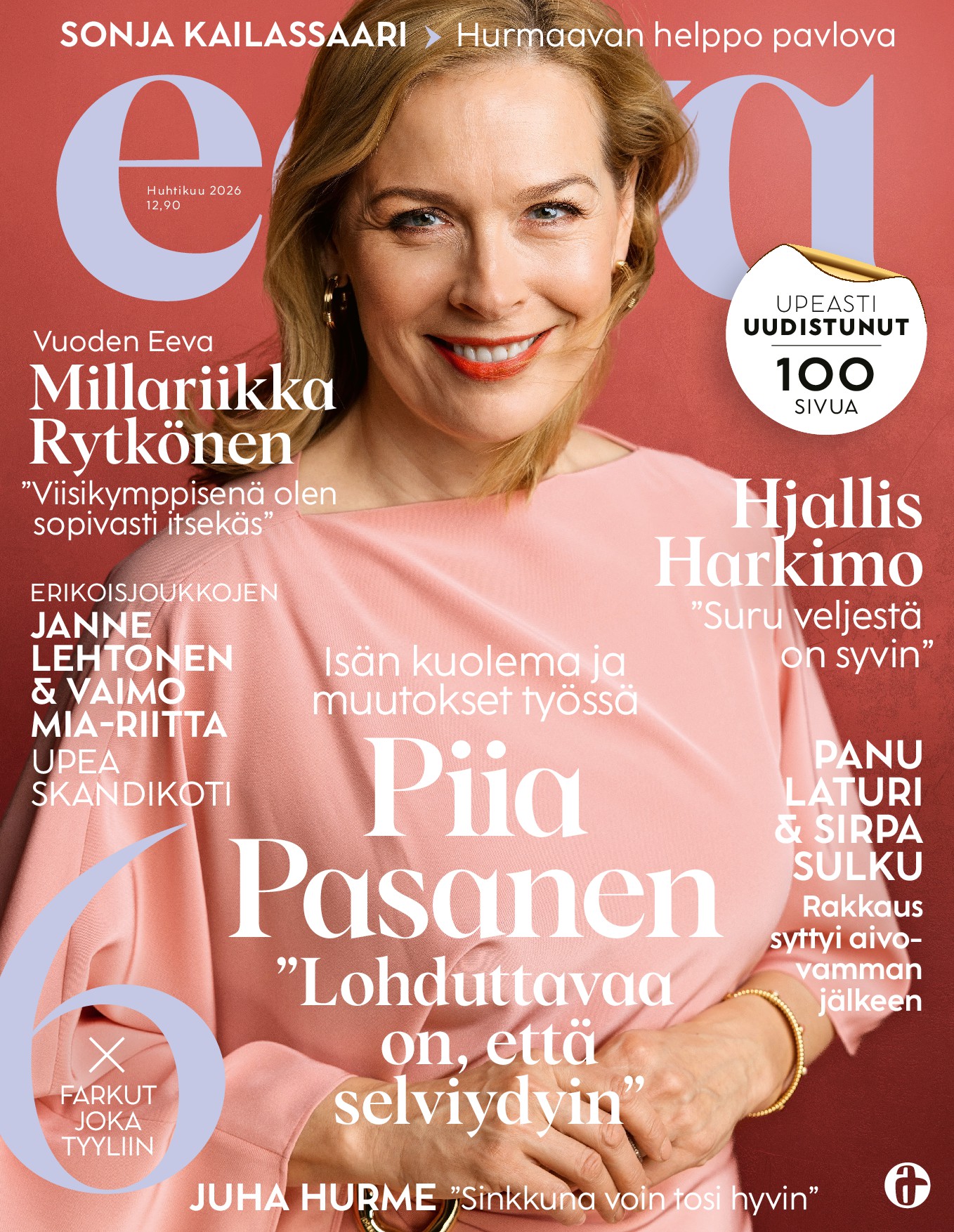 Eeva on lehti sinulle, jonka mielestä kiinnostavinta elämässä ovat ihmiset. Suomen luetuin naistenlehti kertoo julkisuudesta tuttujen ja tähän asti tuntemattomien ihmisten tarinat. Jokaisessa lehdessä on vähintään kuusi pitkää henkilöhaastattelua, jotka koskettavat, kuohuttavat ja kiinnostavat. Kun tilaat Eevan, saat joka kuukausi kotiisi lehden täynnä elämyksiä, ajattelemisen aihetta ja kaunista katsottavaa. Syvällisten henkilöhaastattelujen ja koskettavien selviytymistarinoiden lisäksi Eeva vie sinut kiinnostavien ihmisten koteihin ja keittiöihin. Kulttuurisivut pitävät sinut ajan tasalla siitä, mitä kirjallisuudessa, teatterissa, elokuvissa, musiikissa ja kuvataiteessa tapahtuu. Saat Eevasta myös kauneuden, muodin, terveyden ja matkailun parhaat palat.