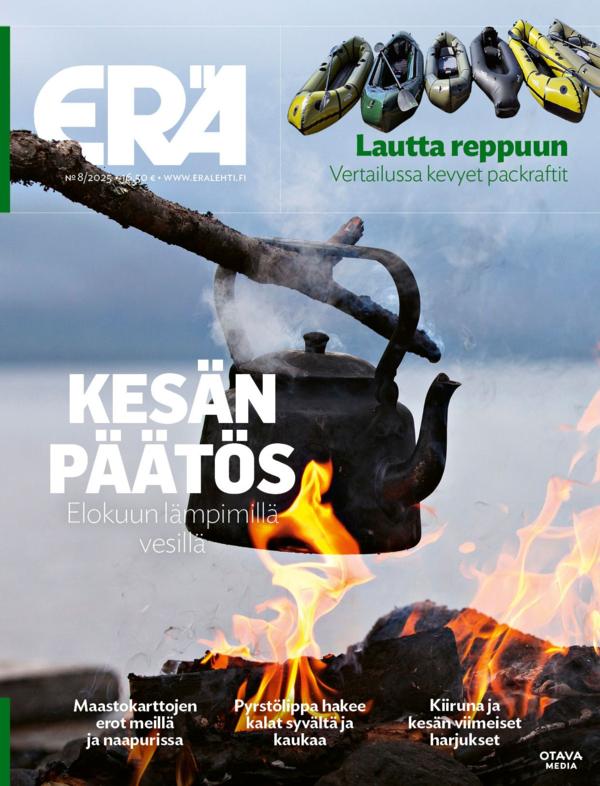 Mer om fiske, camping, utflykter, upplevelser och förmåner för prenumeranter!ERÄ berättar om de bästa fiskemetoderna, fiskeområdena och utrustningen. Många gånger kan en liten ändring av fiskestil, en justering av ett enskilt redskap eller en ny kunskap påverka bytets mängd och kvalitet. ERÄ erbjuder också ett brett utbud av information gällande utrustning och destinationer baserad på finländska vandrares erfarenheter.Mest ekonomisk nytta har läsarna av ERÄs unikt täckande jämförelsetester, eftersom de då kan fatta bättre beslut angående val av redskap: här informerar vi såväl om de högklassiga testvinnarna som ”bra köp”-produkterna med bästa möjliga förhållande mellan pris och prestanda.Majoriteten av tidningens medhjälpare är specialister inom olika områden, samt professionella fiske-och vildmarksguider, vars uppgift är att ge läsaren nytt virke för att öka läsarens egen kunskap och färdigheter. Tidningen är på finska.