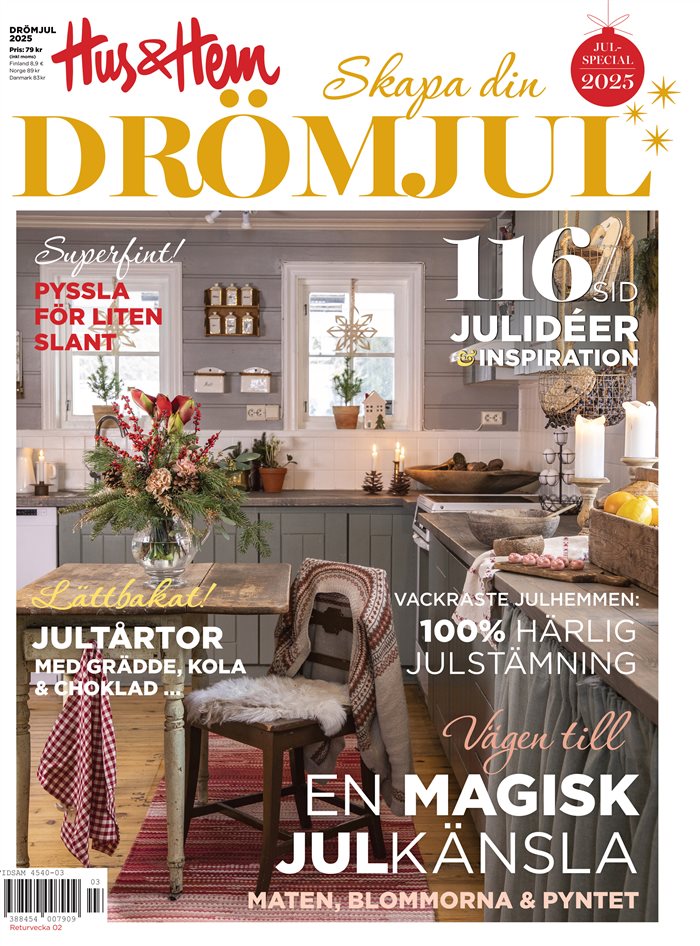 Hus & Hem är tidningen för alla som intresserar sig för inredning, hus, hem och trädgård.Tidningen är sprängfylld med stora hemma hos-reportage och ritningar, gör det själv-ideér och härliga bilder med inspirerande inredningar. Självklart hittar du också konkreta och praktiska tips om allt från skorstenen till grinden.