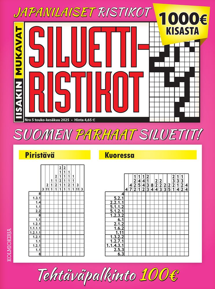 Klura och kom till insikt! Fundera, färga och hitta bilden som är gömd i rutan! Uppgifter som utvecklar intelligensen och det logiska tänkandet. Nybörjare kommer lätt med in i leken, I varje nummer finns det tydliga instruktioner hur man löser japanska korsord. Alla uppgifter har fina vinster! Tidningen är på finska.