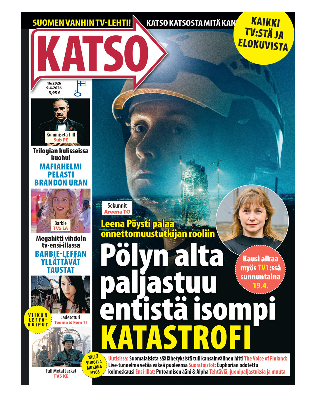 Beställ Katso-tidningen - Håll dig uppdaterad om tv-program och nyheter från filmvärlden!Katso är Finlands största tv-tidning som håller dig uppdaterad om tv-program och de senaste nyheterna från film- och tv-världen. På Lehtitukku.fi hittar du de bästa erbjudandena!När börjar din favoritprogram? Och vilka spännande filmer kan du se i helgen? Katso-tidningen ger svar på dina frågor genom att tydligt och lättläst presentera veckans tv-program.Tidningen erbjuder också djupa intervjuer med skådespelare, regissörer och andra branschproffs, bakgrundsinformation om dina favoritprogram och en inblick i kändisarnas personliga liv. Dessutom avslöjar Katso-tidningen handlingen i populära serier och ger recensioner av de senaste filmerna.Beställ Katso-tidningen nu till ett förmånligt pris från Lehtitukku.fi och fördjupa dig i tv-världens fängslande universum! Finlands mest populära tv-tidning, Katso, kommer definitivt inte att göra dig besviken!Genom att beställa den tryckta tidningen accepterar du förlags (Aller Media Oy) villkor . Genom att beställa Seiska Digil accepterar du förlaget (Aller Media Oy) villkor . Genom att prenumerera bekräftar jag att jag har läst Aller Media Oy:n sekretesspolicyn.