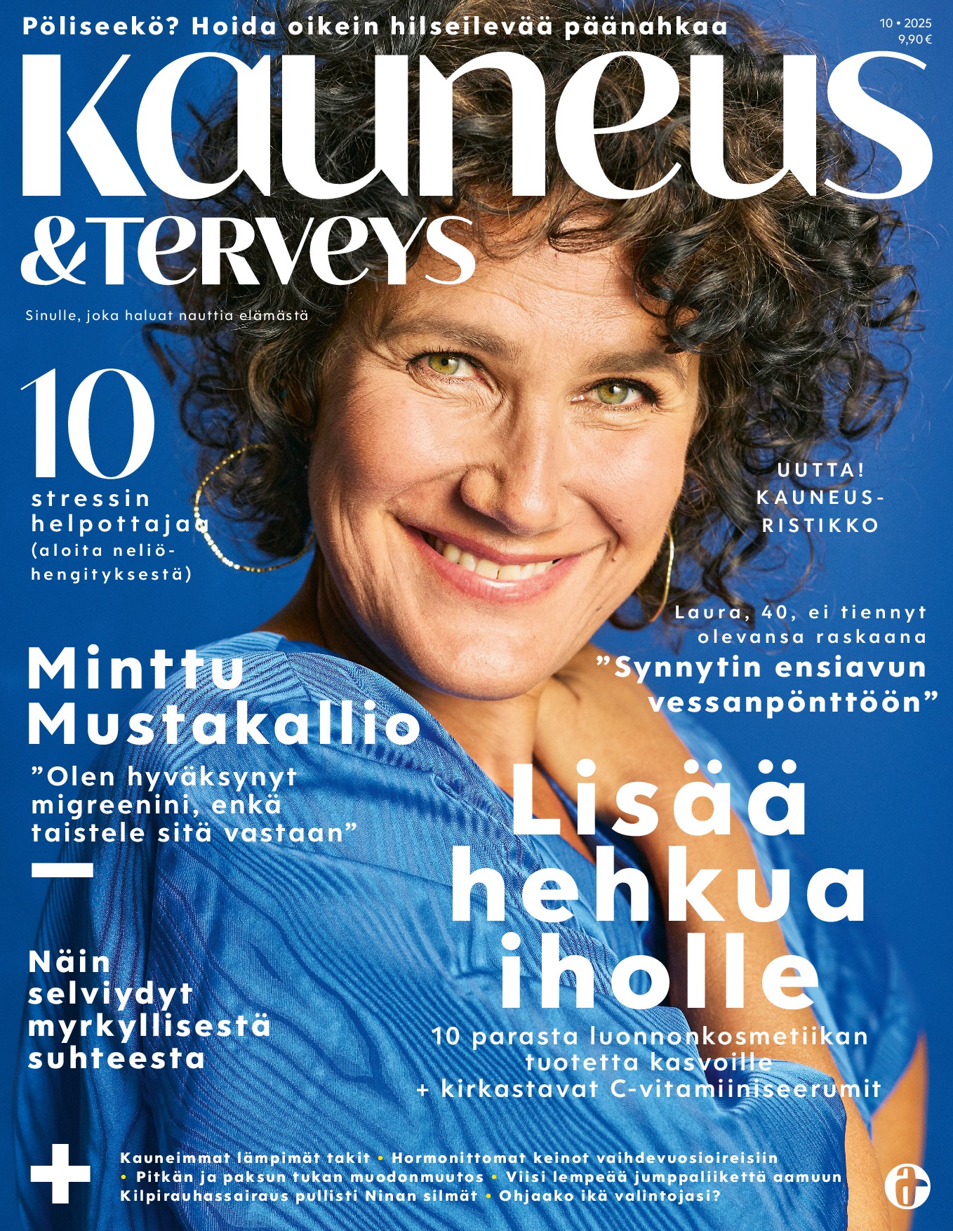 3 HYVÄÄ SYYTÄ TILATA KAUNEUS JA TERVEYS1. Teet viisaita valintoja: Kauneus ja Terveys poimii kiinnostavimmat kosmetiikkauutuudet, testaa tuotteet ja hoidot ja perkaa trendit. 2. Pidät huolta itsestäsi: Kauneus ja Terveys auttaa sinua löytämään ilon ja inspiraation terveydestä huolehtimiseen. Löydät joka numerosta innostavia ihmisiä, fiksuja vinkkejä ja koskettavia tositarinoita.3. Tutustut itseesi syvemmin: Kauneus ja Terveys auttaa sinua voimaan paremmin. Voit syventyä mielen hyvinvointiin asiantuntijoiden opastuksella ja vertaistuen avulla.