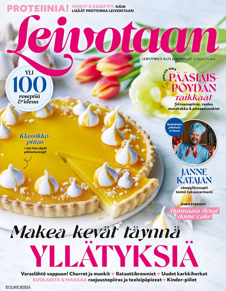 Leivotaan-lehti on jauhopeukalon paras valinta! Herkullisten ohjeiden lisäksi Leivotaan-lehti sisältää paljon mielenkiintoisia reportaaseja suoraan keittiön herkullisesta maailmasta. Lehden sisältö mukautuu kausivaihteluihin ja vuodenaikoihin. Talvella leivotaan lämmittäviä herkkuja, keväällä raikkaita suupaloja, kesällä ja syksyllä taas loihditaan leivoksia ja muita makeita uuden sadon aineksista, sekä säilötään vitamiinit talteen talveksi! Leivotaan-lehdestä löydät sekä makeita, että suolaisia leivonnaisia sekä arkeen, että juhlaan.Ajankohtaiset reseptit ja ohjeet pitävät sinut ajantasalla kausittaisista keittiöuutisista! Leivotaan on Suomen suurin leivontalehti. Yli 100 reseptiä jokaisessa lehdessä!