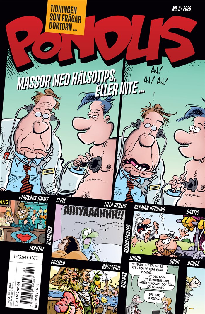 Lägg till detta en blandning av grovkornig, men träffsäker humor från gräddan bland Nordens tecknare som Lars Lauvik, Hans Lindström och Niklas Eriksson, den oförliknelige Walter Kurtsson och Tor Liers Kollektivet, plus seriöst insnöade men hejdlöst roliga serien M och du har en garanterat livskvalitetsförhöjande serietidning för (nästan) vuxna. Pondus utkommer månatligen.