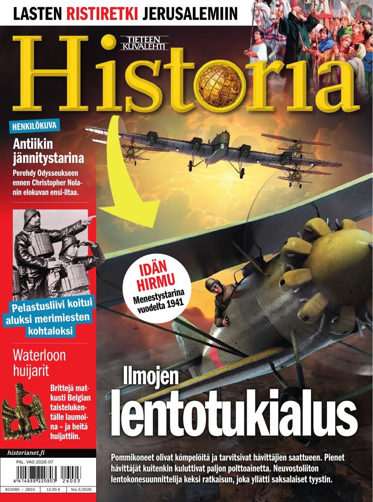 Tieteen Kuvalehti Historia tar med dig på en resa till historiens mest fascinerande ögonblick direkt från soffan. Kliv in i tidsmaskinen och prenumerera nu på Tieteen Kuvalehti Historia genom Lehtitukku!Tidningen ger dig en omfattande översikt av världshistoriens viktigaste händelser. Du kan utforska uppgången och fallet för stora civilisationer, följa banbrytande forskningsresor, uppleva dramatiken i världskrigen, beundra antika kulturer och mycket mer – allt bekvämt från din soffa!Experterna bakom artiklarna sträcker sig från förhistorisk tid till de senaste årtiondena och presenterar betydelsefulla personligheter från stora ledare till religiösa influenser och viktiga uppfinnare. Vardagslivet för vanliga människor under tidigare epoker kommer också till liv på tidningens sidor.Tieteen Kuvalehti Historia drivs av historieexperter som säkerställer artiklarnas tillförlitlighet och expertis. Tidningen erbjuder djup kunskap och nya perspektiv på historiska händelser och hjälper dig att förstå hur det förflutna påverkar nutiden.Upptäck den fascinerande världen från förr genom att prenumerera på Tieteen Kuvalehti Historia på Lehtitukku.fi redan idag!