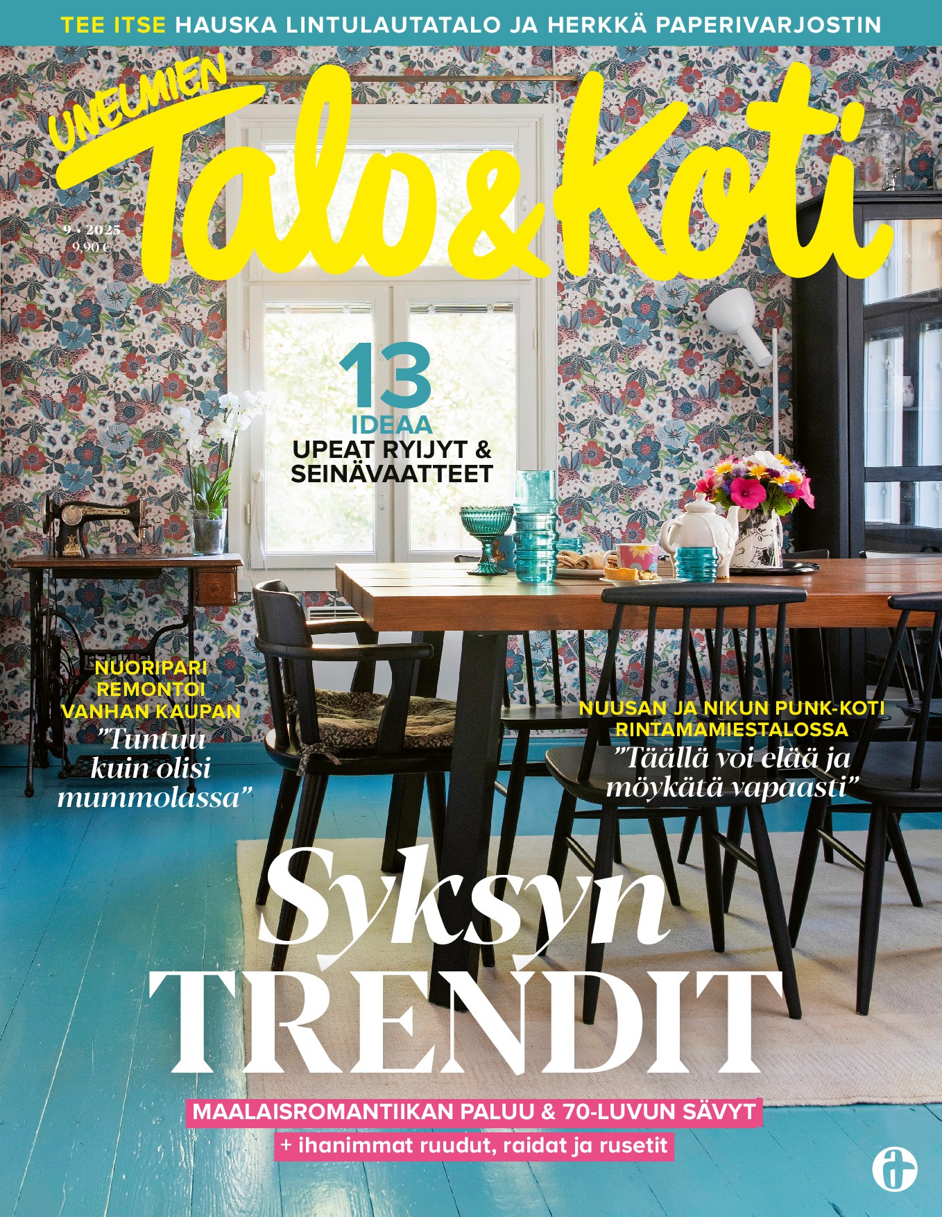 Unelmien Talo&Koti on täynnä värejä, runsautta ja tekemisen iloa. Jokaisessa numerossa on tavallisten suomalaisten rakkaudella sisustamia koteja, joista löydät ideoita omaan kotiisi. Toimitus valitsee jokaiseen lehteen vähintään sata sisustuslöytöä. Saat joka numerossa myös tee itse -ohjeita ja ideoita aarteidesi kunnostamiseen. Lehti on täydellinen yhdistelmä inspiroivaa uutta ja rakasta vanhaa!