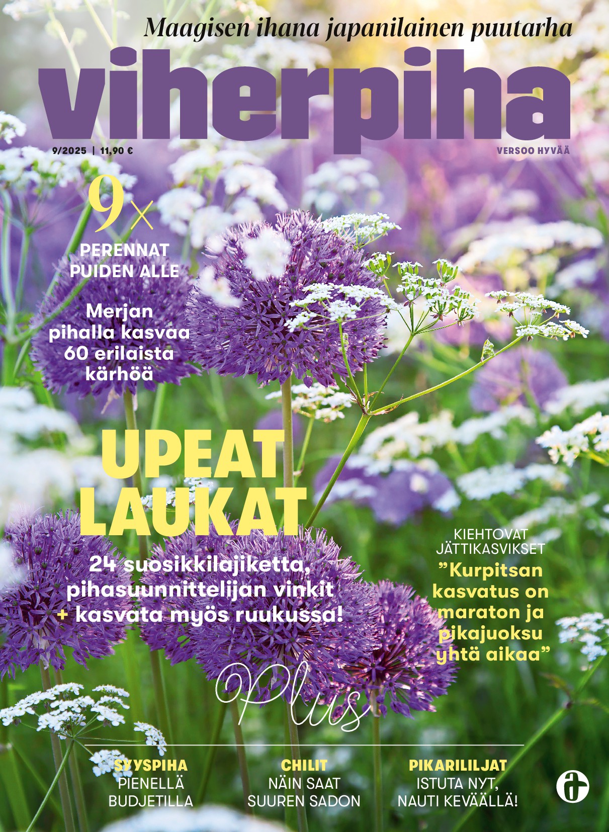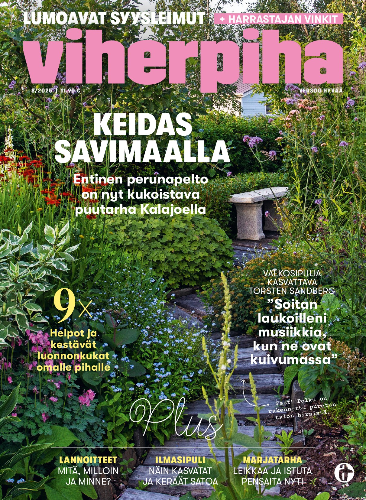 VIHERPIHA on viherharrastajien oma lehti, jonka matkassa pääset opastetuille kierroksille suomalaisiin viherkeitaisiin etelästä pohjoiseen. Puutarhaesittelyjen lisäksi saat jokaisessa numerossa tietoa koriste- ja hyötykasveista sekä niiden kasvattamisesta. Oletpa aloittelija tai konkari, Viherpihan vinkeillä innostut ja onnistut. Kerromme kiinnostavimmat uutuudet ja ilmiöt ja annamme jokaiseen sesonkiin parhaiten sopivat ideat sisälle ja pihalle. Ei ole väliä, onko puutarhasi pihalla vai ruukuissa parvekkeella, Viherpihassa olet aina omiesi joukossa.