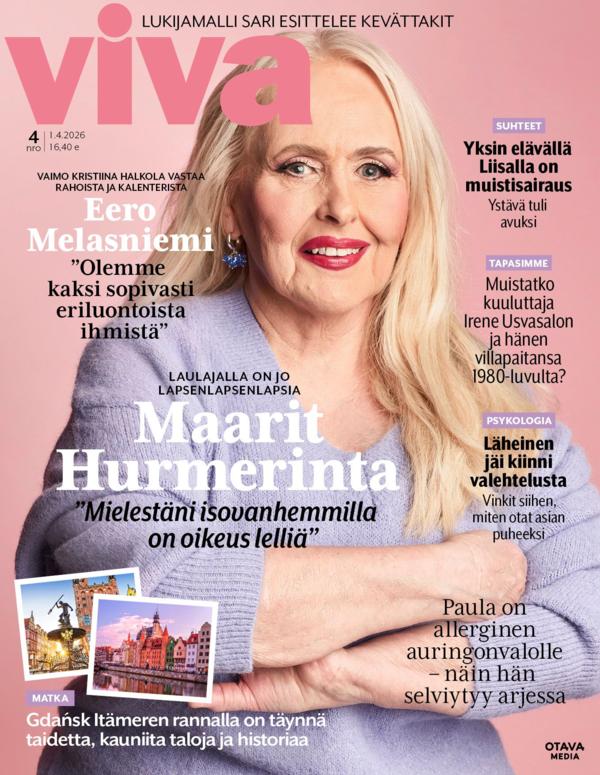 Ett fullspäckat läspaket för seniorer. Viva är en varm och underhållande kvalitetstidning för aktiva vuxna. I Viva hittar du gripande berättelser och gemensamma upplevelser. I tidningen finns det fascinerande personporträtt, reportage, resor och kultur. Även hälsa och välmående hör till våra centrala teman: med varje nummer kommer den nya Luontaishoitaja-bilagan. Viva ger mycket nyttig information angående hälsa, boende, besparingar, pensioner, försäkringar och arv. I varje nummer kan läsaren utmana sig själv med de prisade och fullspäckade dubbelkryssen. Tidningen är på finska.